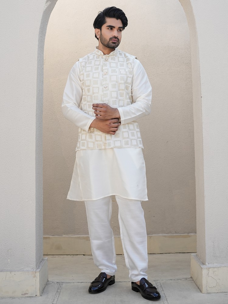 Set Includes: Kurta, Nehru Jacket & Trousers