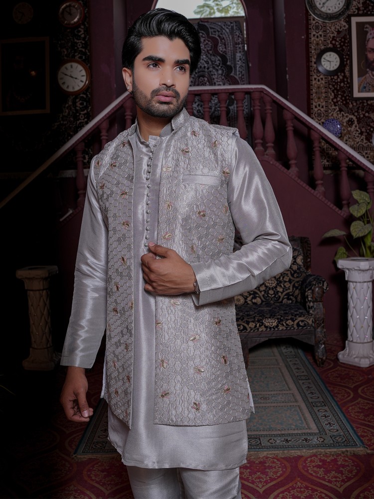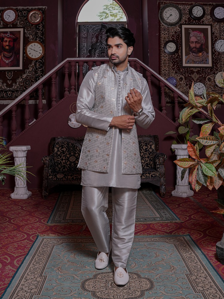Set Includes: Kurta, Nehru Jacket & Trousers