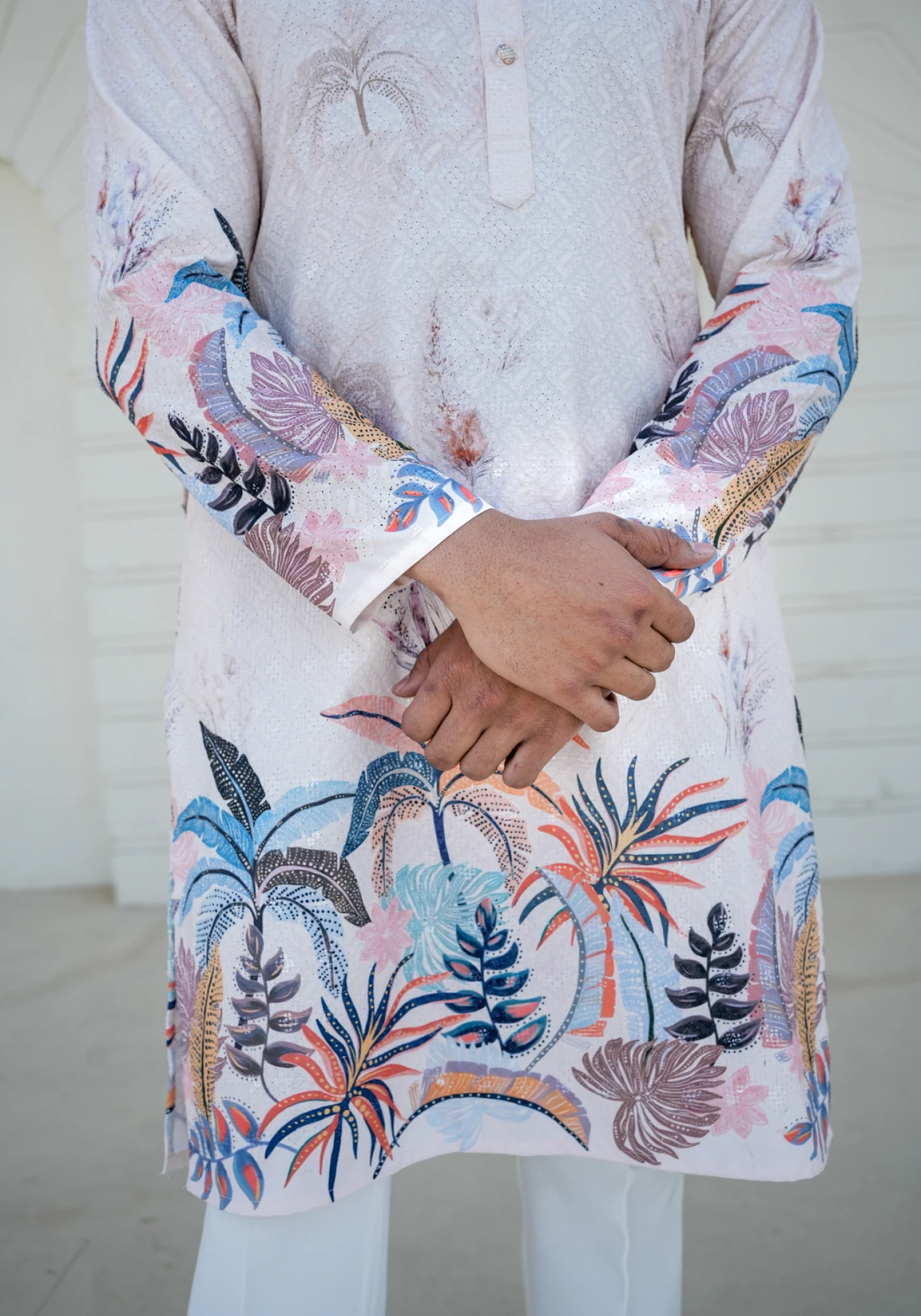 Fresh, artistic, and effortlessly refined β this Off-White Rayon Schiffali Digital Print Kurta is designed for modern festive elegance. Crafted in soft and breathable rayon fabric, it features vibrant digital print detailing inspired by botanical motifs, creating a striking yet sophisticated look. The clean silhouette and subtle textured base balance the bold print, making it perfect for daytime celebrations, festive gatherings, and special occasions. Lightweight and comfortable, this kurta ensures ease of movement while maintaining a sharp, polished appearance.