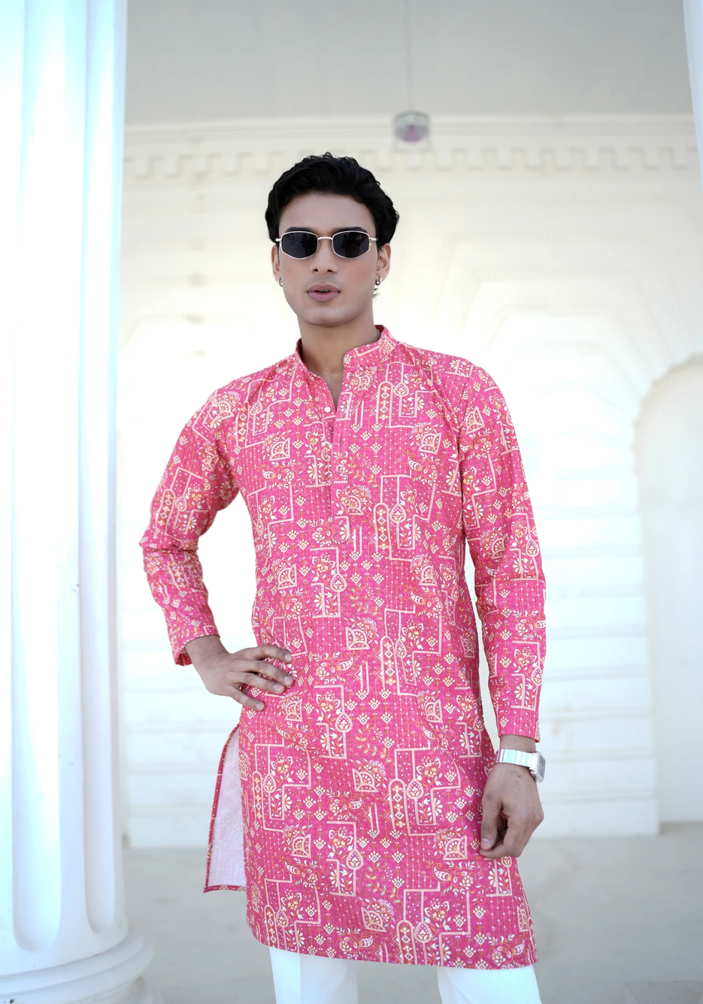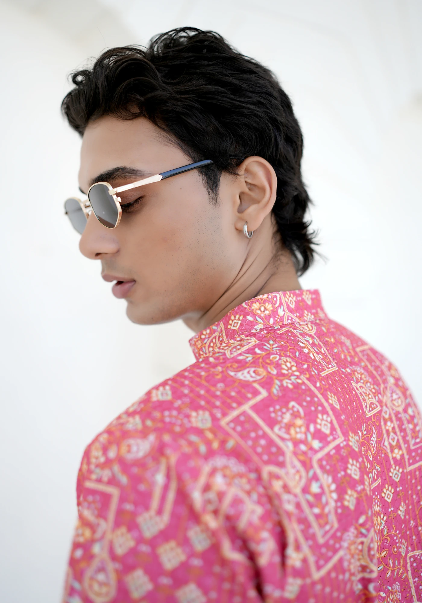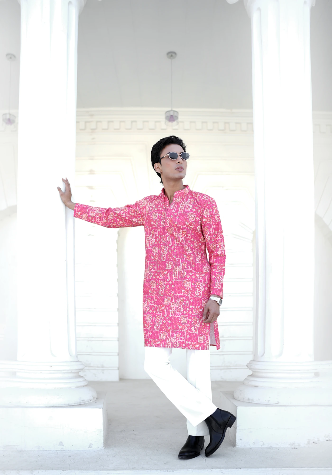 Bold, vibrant, and unapologetically festive β this Hot Pink Heritage Print Kurta is designed for those who love to stand out. Featuring intricate all-over traditional-inspired prints, this piece blends cultural artistry with a sharp, modern silhouette. The striking pink base adds energy and celebration-ready charm, making it ideal for haldi functions, mehendi ceremonies, and festive gatherings. Crafted for comfort and impact, it delivers effortless style with a confident edge.