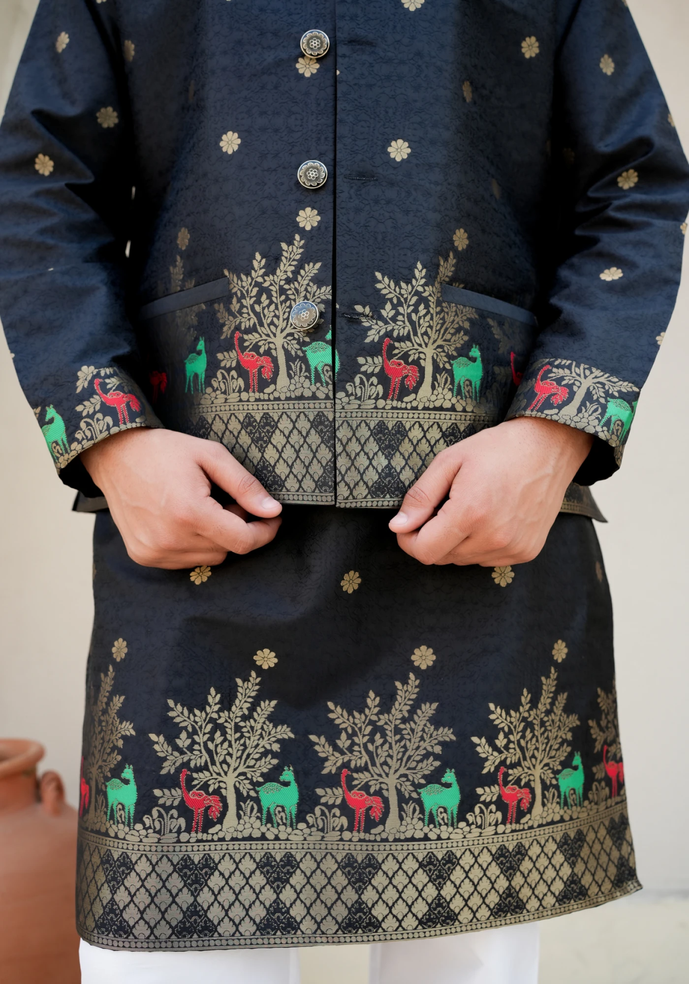 Set Includes: Kurta & Jacket (Pants Not Included)