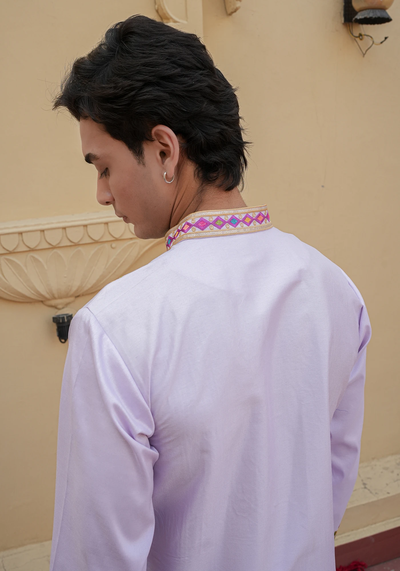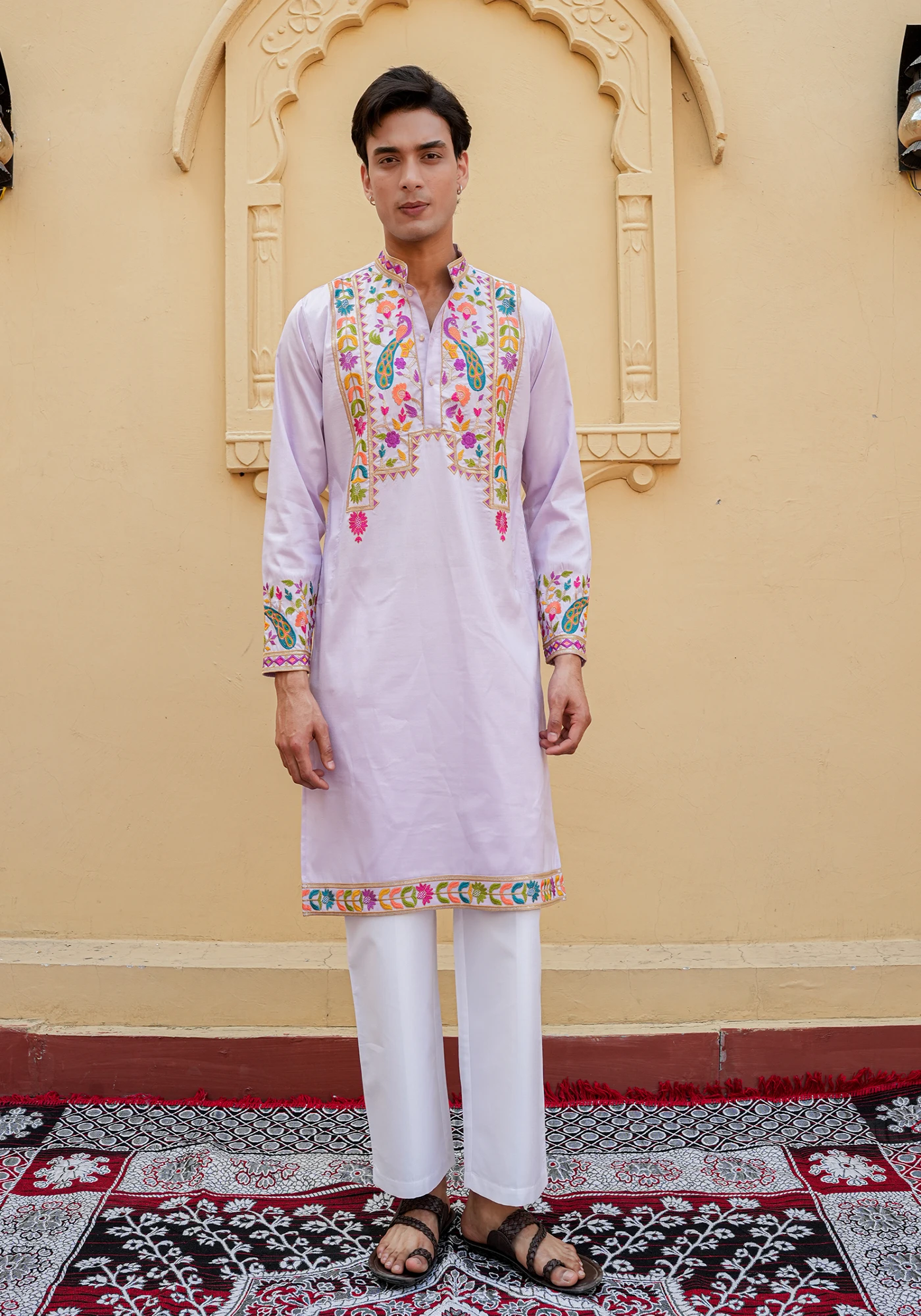 Vibrant, artistic, and celebration-ready β this Lilac Multicolor Embroidered Kurta is crafted to make a refined festive statement. The soft lilac base is beautifully enhanced with intricate, colorful embroidery along the neckline, cuffs, and hem, adding rich cultural character and visual depth. Designed in a clean, modern silhouette, it blends traditional craftsmanship with contemporary elegance. Perfect for festive gatherings, mehendi functions, and cultural celebrations, this kurta delivers standout charm with effortless sophistication.