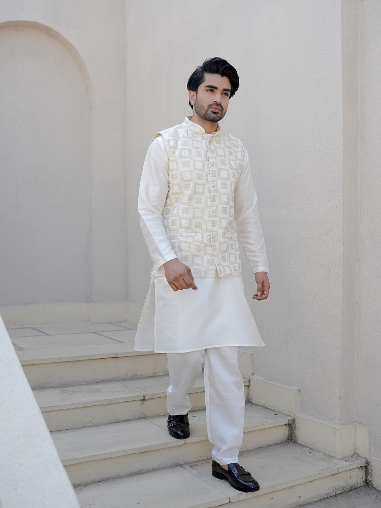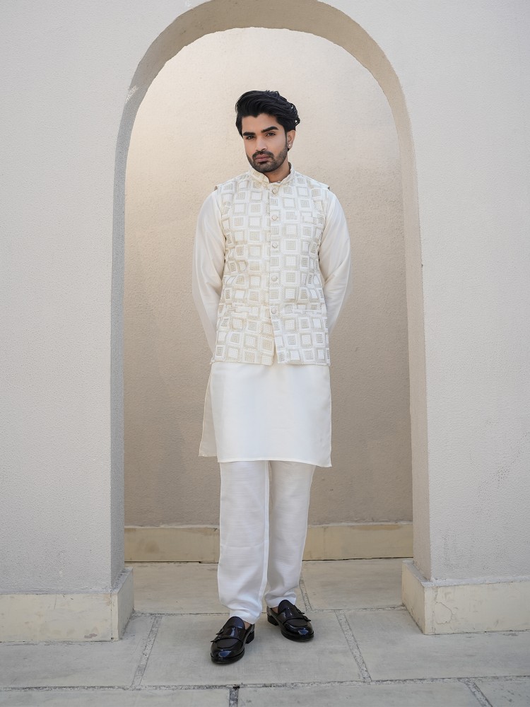 Set Includes: Kurta, Nehru Jacket & Trousers