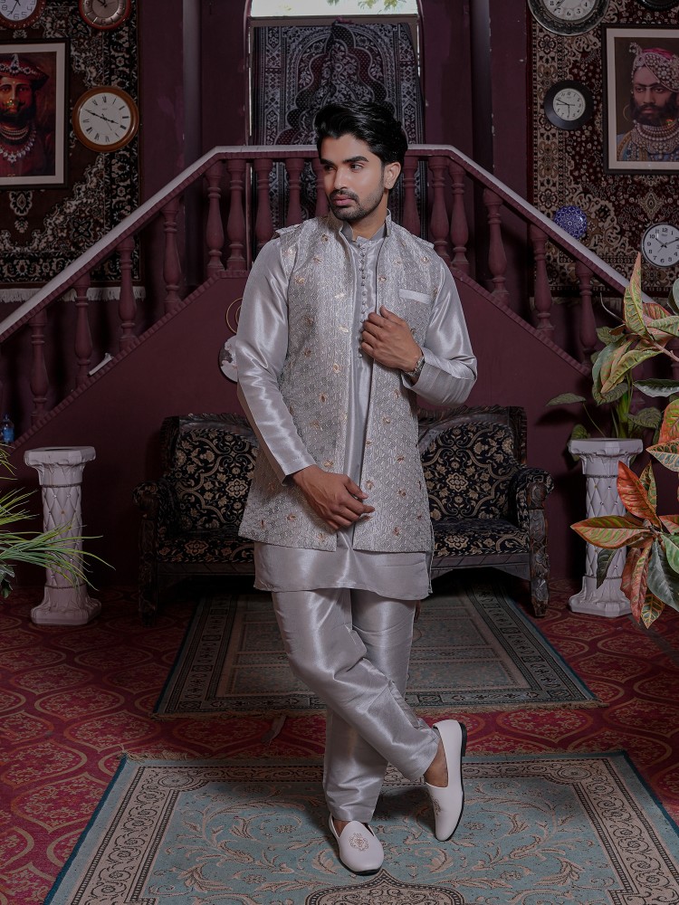 Set Includes: Kurta, Nehru Jacket & Trousers