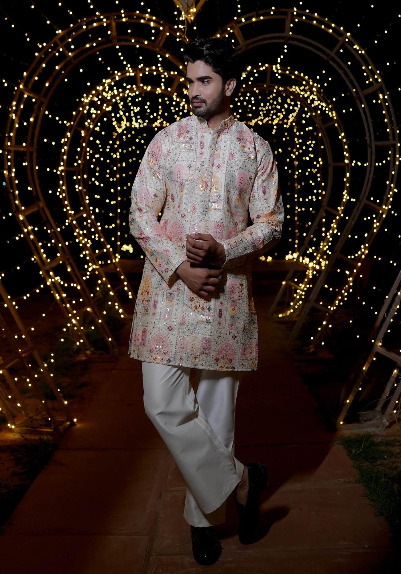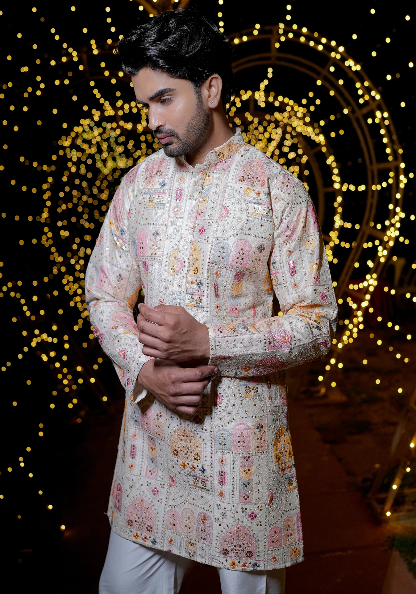 Men’s Cream Embroidered Kurta – Luxury Wedding & Festive Ethnic Wear