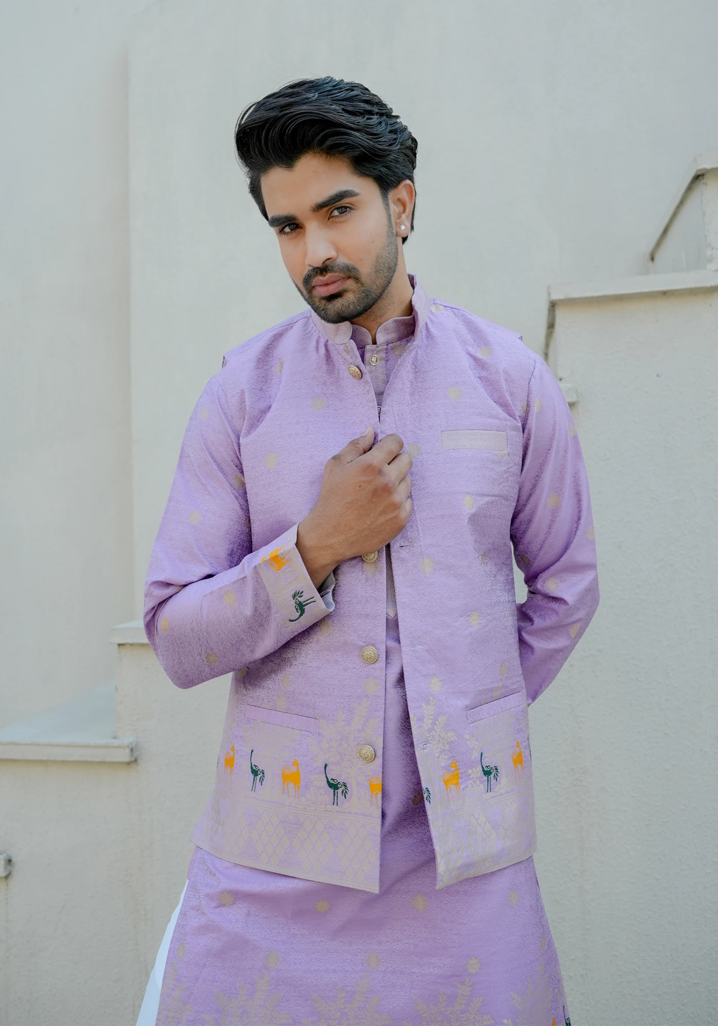 Set Includes: Kurta & Jacket (Pants Not Included)