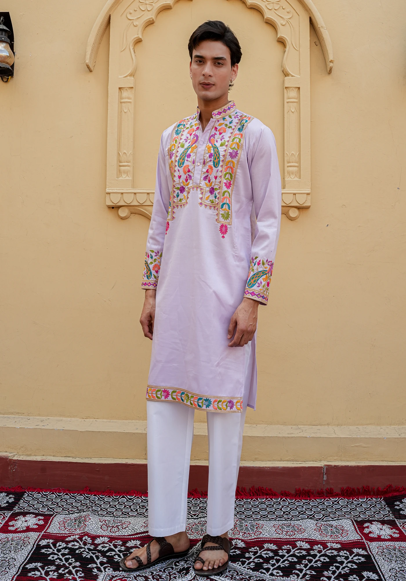 Vibrant, artistic, and celebration-ready β this Lilac Multicolor Embroidered Kurta is crafted to make a refined festive statement. The soft lilac base is beautifully enhanced with intricate, colorful embroidery along the neckline, cuffs, and hem, adding rich cultural character and visual depth. Designed in a clean, modern silhouette, it blends traditional craftsmanship with contemporary elegance. Perfect for festive gatherings, mehendi functions, and cultural celebrations, this kurta delivers standout charm with effortless sophistication.